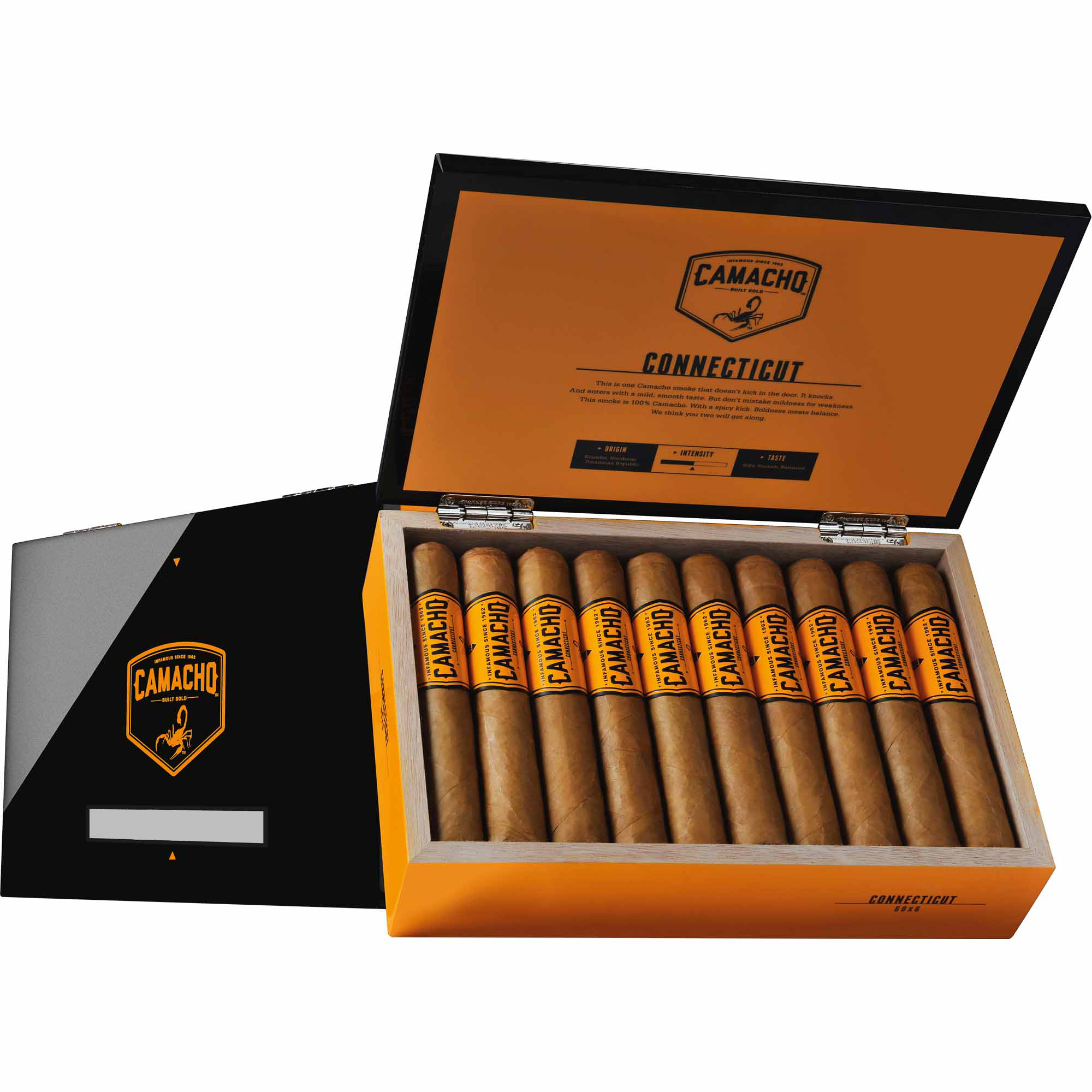 A mild-to-medium strength cigar with notes of cedar, spice, pepper and nuts. Its warm-tan, Ecuadorian Connecticut Shade wrapper drapes a Honduran Corojo binder and Dominican and Honduran fillers. Handmade in Honduras, the Camacho Connecticut 60 was created to appeal to smokers who want a cigar on the milder side.