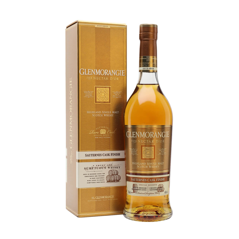 Glenmorangie Nectar D’Or is a whiskey with a beautiful golden color and a very rich taste of sweet spices and gingerbread. Nectar D’Or gets its luxurious and sweet taste by aging in specially selected barrels from Sauternes, the most famous and oldest French region for the production of sweet wines. The aroma is dominated by lime and orange peel, dried raisins and dates, which give it a rich fruity taste with notes of coconut and nutmeg.