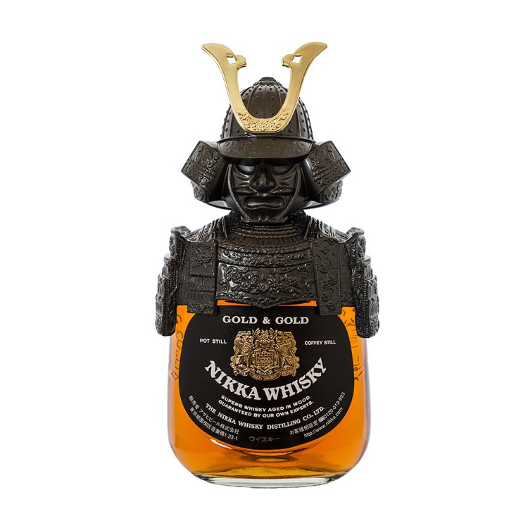 The special edition with removable samurai armor and helmet on the top of the bottle. The design of the label is as it was back in the 1970s when Nikka first launched its Gold & Gold expression. Smooth, round, and warming, especially with some time, with a subtle hint of peat. Sweet spiciness of cinnamon and ginger, some pepper notes, maltiness, and a wood spice.