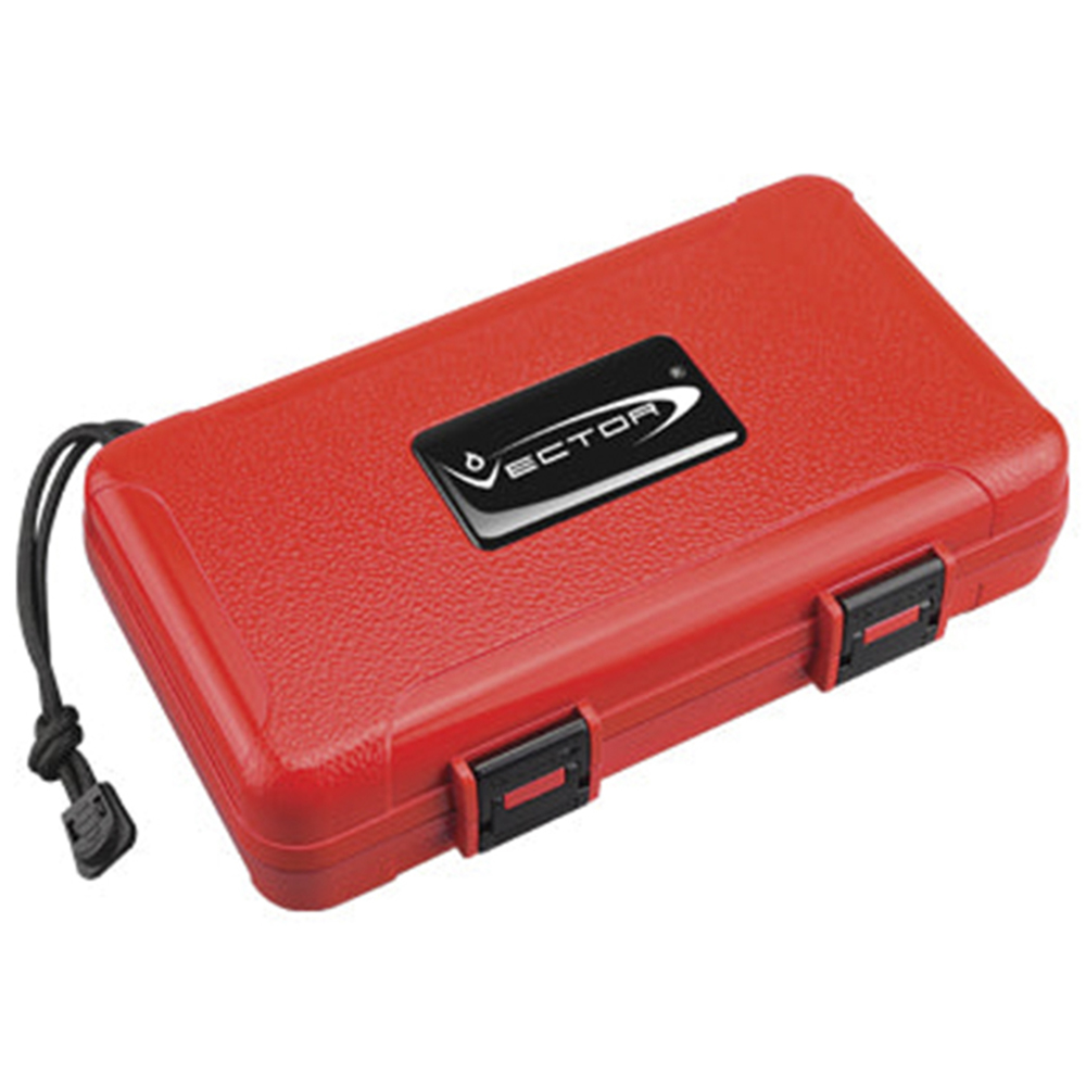 Humidor for 5 cigars in red color, it contains 2 layers of foam, ideal for additional storing of accessories such as cutters or lighters.