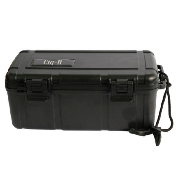 Praktični plastični putni humidor, vodootporan, s remenom za nošenje. Ovlaživač u poklopcu humidora. Dimenzije: Š22 x D13 x V8,5 cm