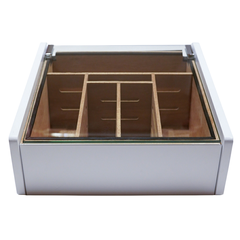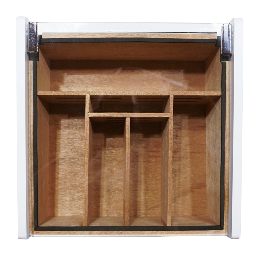 Humidor s unutrašnjošću od cedrovine i staklenim poklopcom, pogodan je za čuvanje od 80 do 100 cigara. Stakleni poklopac je malo nakošen zbog boljeg pogleda na cigare. Pretinci se mogu podijeliti na 4, 5 ili 6 pretinaca s odvojenim pretincem u sredini koji je namjenjen za ovlaživač zraka.