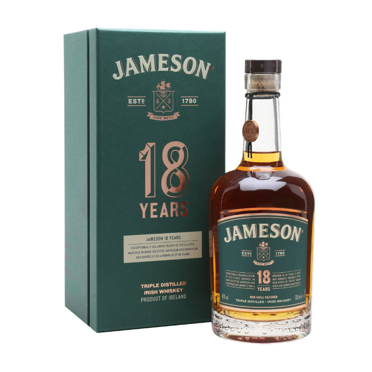 Jameson 18yo blended irski viski dozrijevao je u ex-burbon bačvama američkog i europskog hrasta, prije nego što je šest mjeseci odležao u novim bačvama američkog hrasta. Na nepcu se osjećaju note karamele, paprenih začina, hrastovine, nove kože, grožđica natopljenih šerijem, lješnjaka, oraha i vanilije koja se zadržava u završnici.