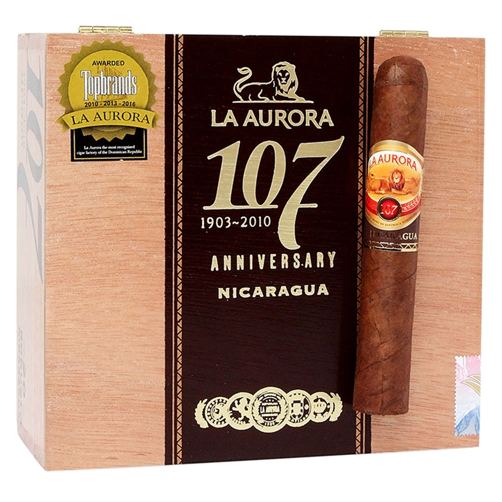 Puna, ali uravnotežena cigara s bogatim drvenim, cvjetnim i zemljanim notama uz orašasti završetak. Ova nikaragvanska cigara ima slatki tamni Habano maduro wrapper. Ručno motana u Dominikanskoj Republici, La Aurora 107 Nicaragua označava prvo izdanje nikaragvanske cigare od ove legendarne marke.
