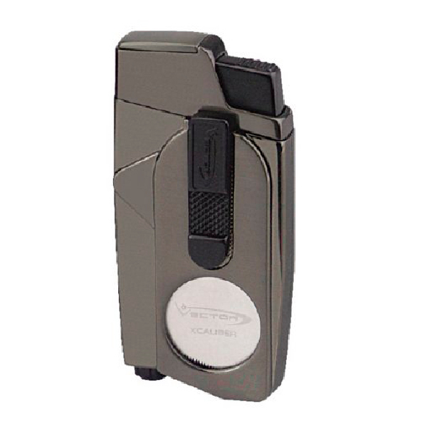 Upaljač s mlaznim plamenom otpornim na vjetar i ugrađenim nazubljenim rezačem za cigare (do ringa 56). 2 plamena.